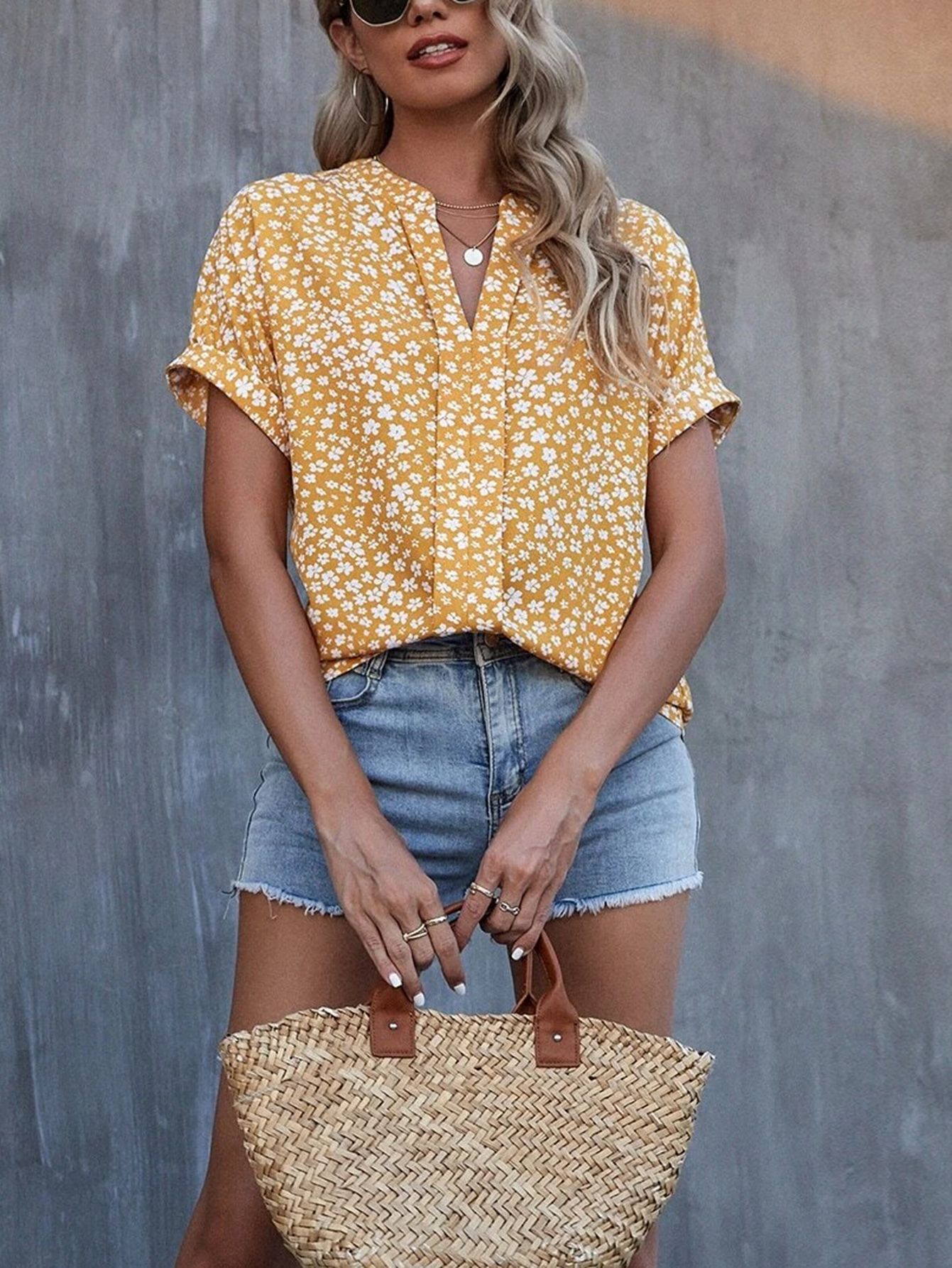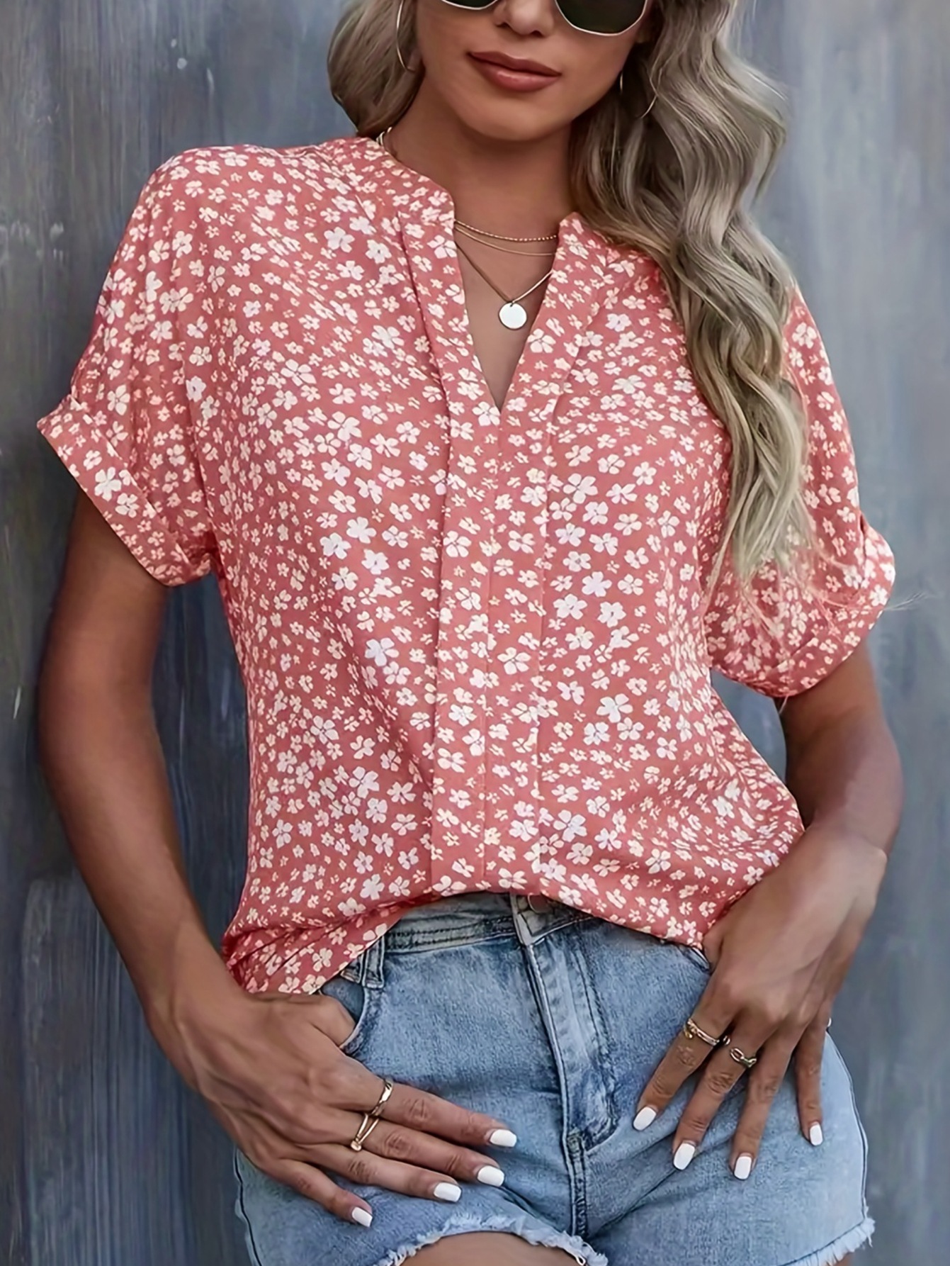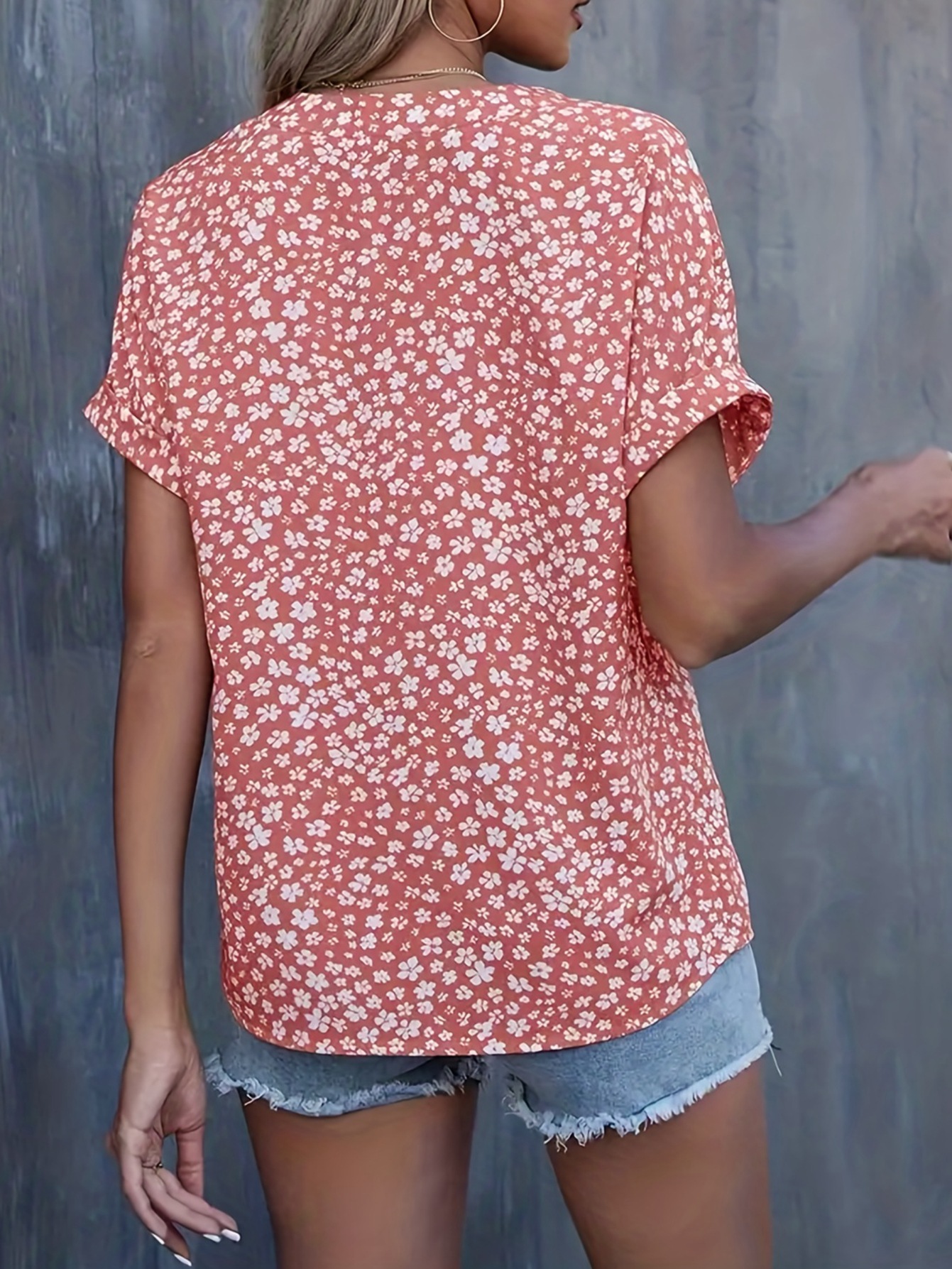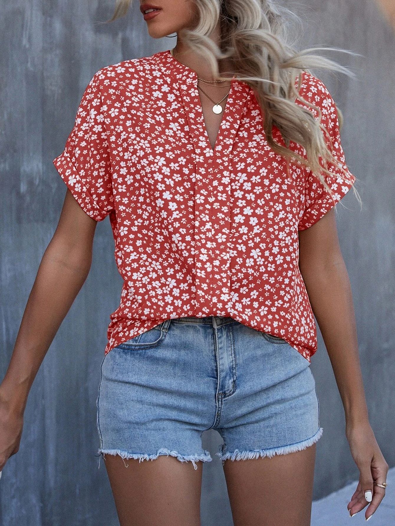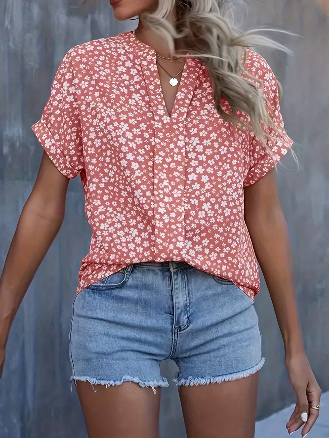 Esta camisa casual presenta un diseño floral pequeño que aporta un toque delicado y elegante. Con mangas cortas y un cuello en V plisado, ofrece comodidad y estilo para el día a día o eventos informales. Su confección ligera facilita la transpiración, ideal para climas cálidos. Perfecta para combinar con diferentes prendas, esta camisa es una opción versátil y sofisticada para quienes buscan un look fresco y cuidado.