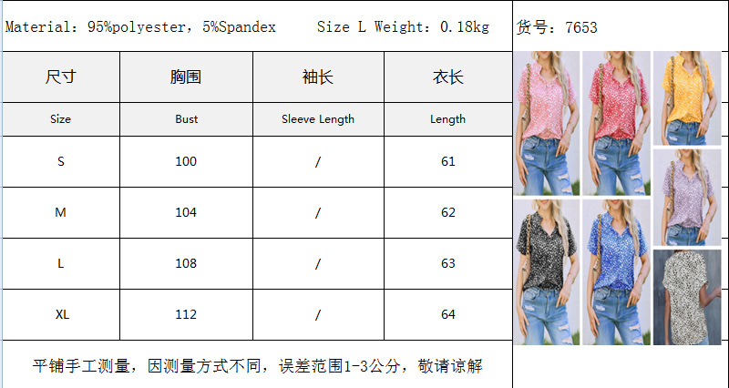Camisa casual Camisa floral pequeña de manga corta con cuello en V plisada
