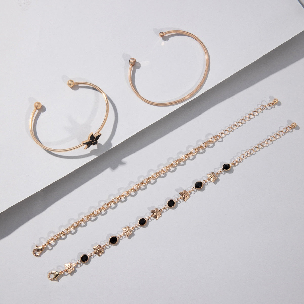 Elevate your wrist collection with this sophisticated four-piece bracelet set, blending European and American retro aesthetics. Each piece features premium fashion zircon stones that catch the light beautifully, while delicate five-petal flower and butterfly motifs add timeless elegance. The lustrous silver finish complements any occasion, from casual outings to special events. This versatile ensemble allows for mix-and-match styling, letting you create personalized looks that reflect your refined taste. Perfect for those who appreciate classic design with contemporary flair.