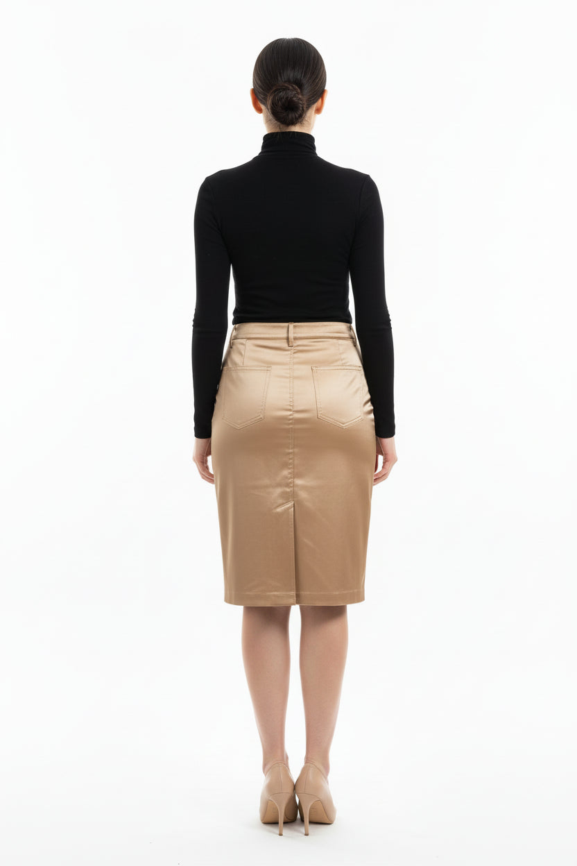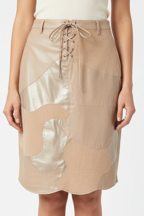 Crafted from premium synthetic leather, this cream-toned skirt delivers a refined aesthetic with minimal maintenance. The polyester lining and nylon construction ensure lasting wear and a lustrous finish that commands attention. Whether styled casually with basics or elevated for evening occasions, this piece seamlessly transitions across your wardrobe. The faux leather material resists wrinkles and cleans effortlessly, making it an intelligent choice for those seeking sophistication without compromise. 100% polyester lining, 100% nylon. Made in China.